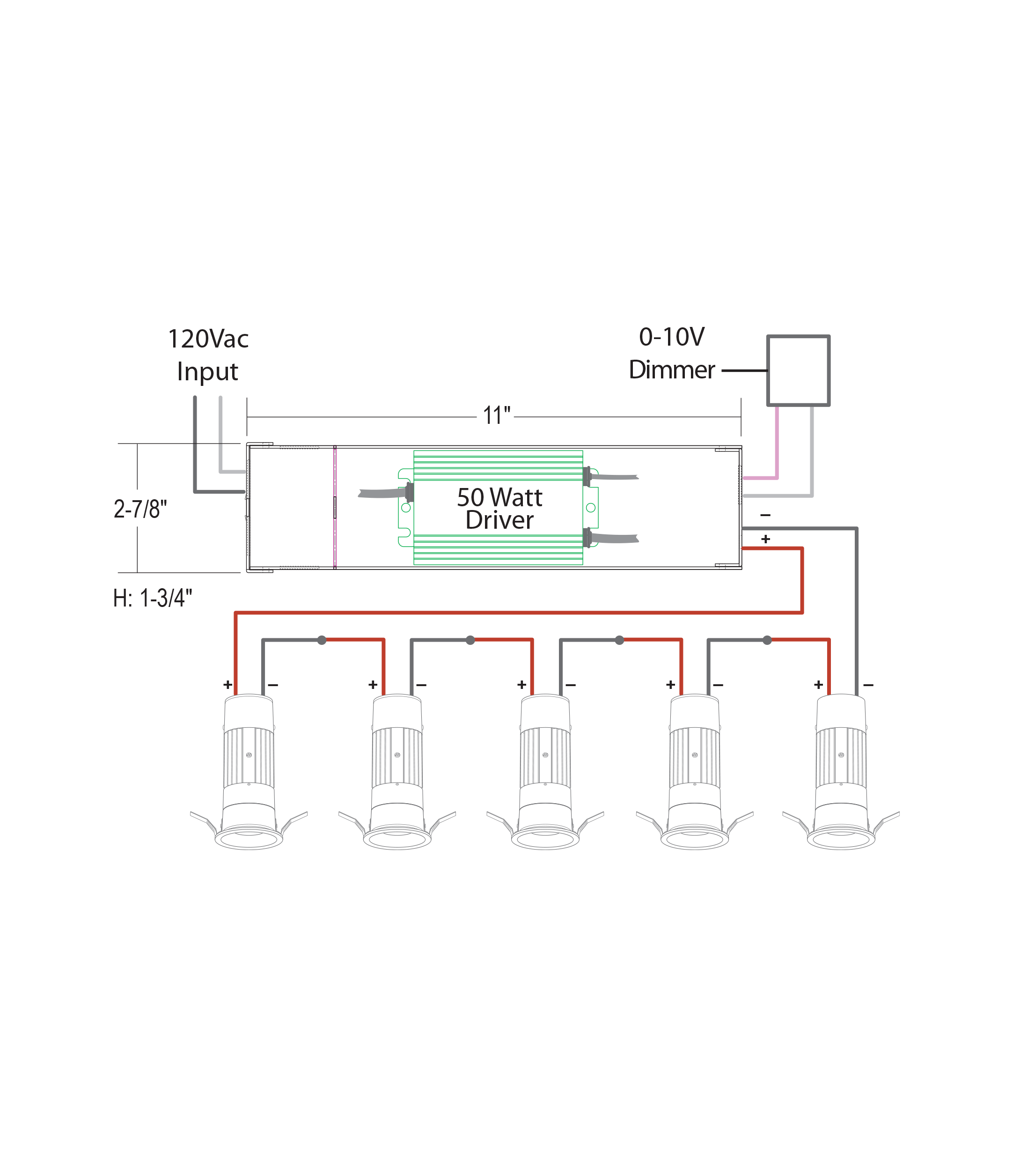 Remote power supply, 1 driver for multiple fixtures.