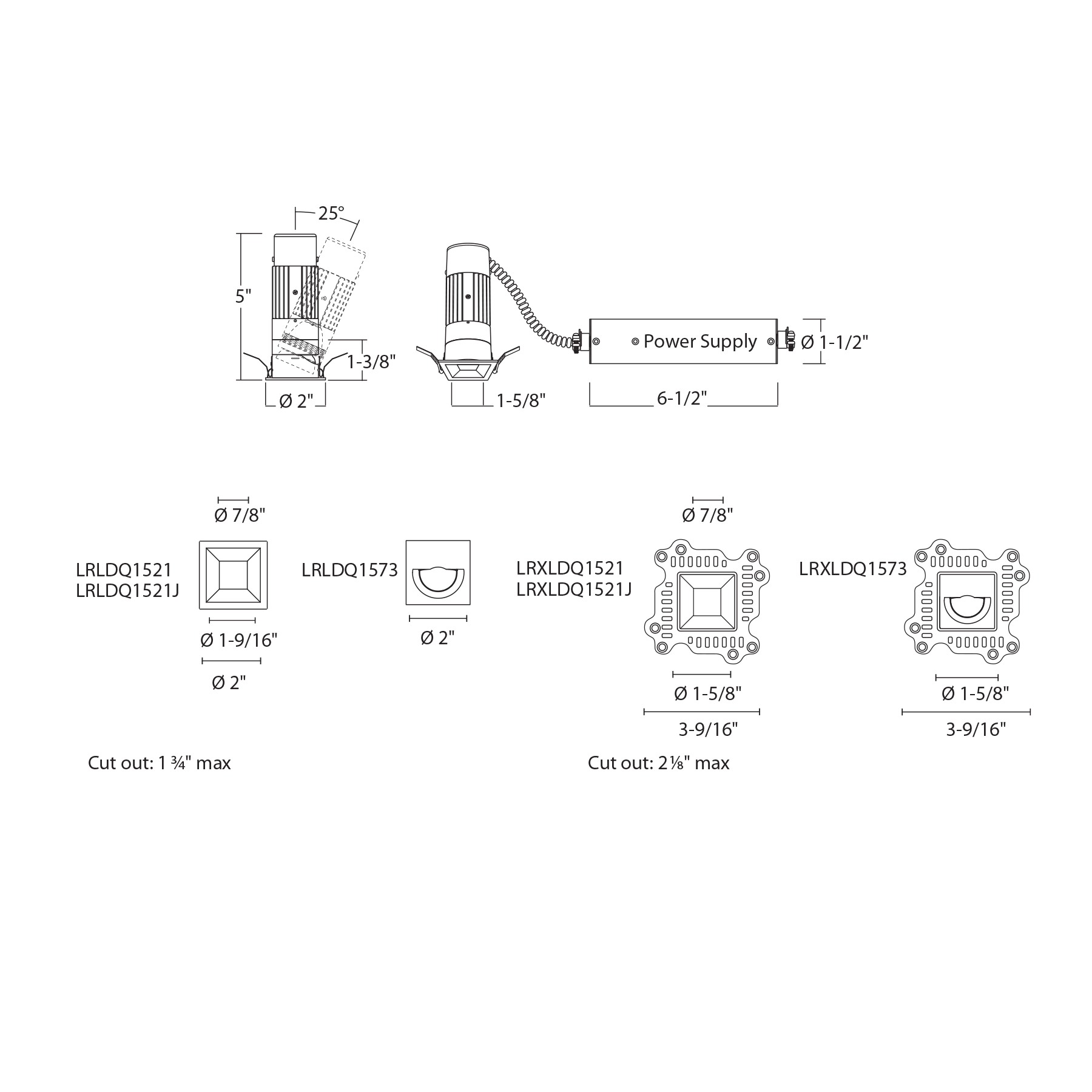 LRLDQ1521 : 1.5" P-Series Micro Recessed LED, Square Aperture Flanged Downlight, 500LM-1000LM (6W-12W)