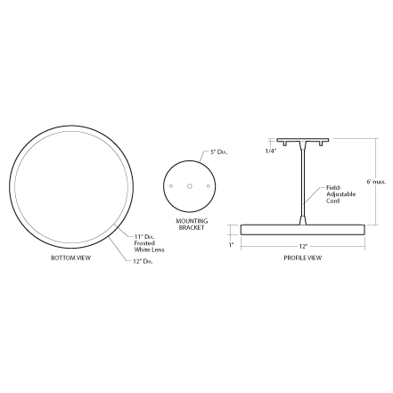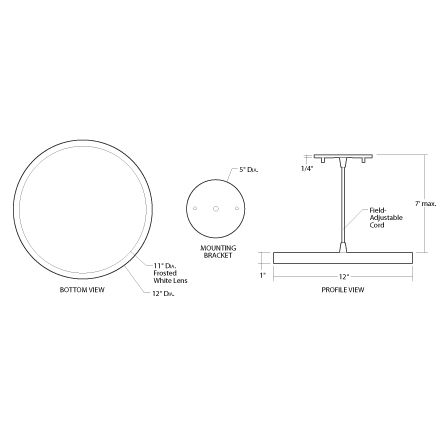 The 12" LumenPad Round LED Downlight Pendant Mount floats with elegance in contemporary architectural applications, a unique combination of innovative, elegantly minimalist design and high-quality LED performance. The luminaire is perfect for Retrofit, New Construction and Remodel Applications in low to medium height ceilings. Super thin profile is unobtrusive in design and has low glare. Lens is a Polycarbonate Frosted White Lens.