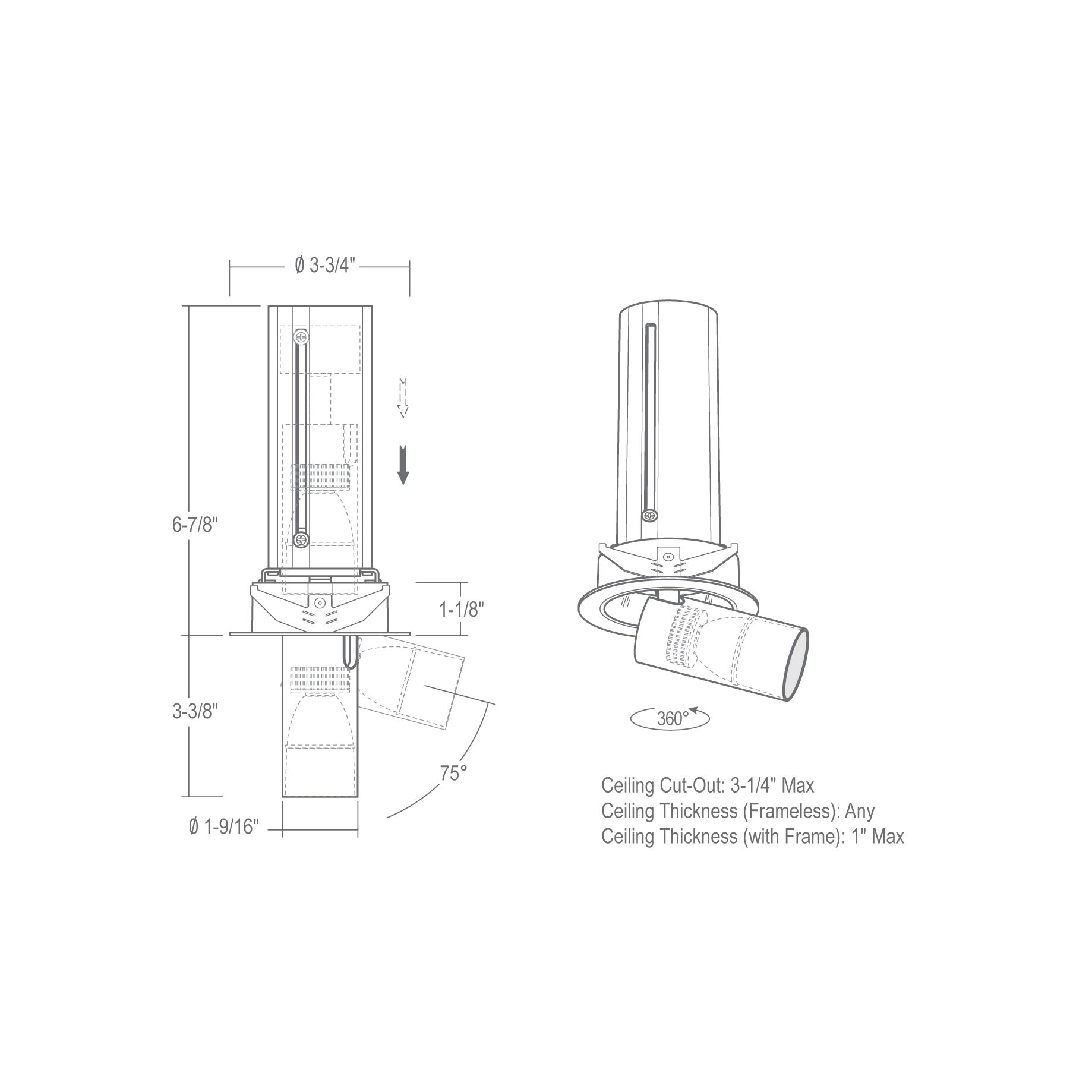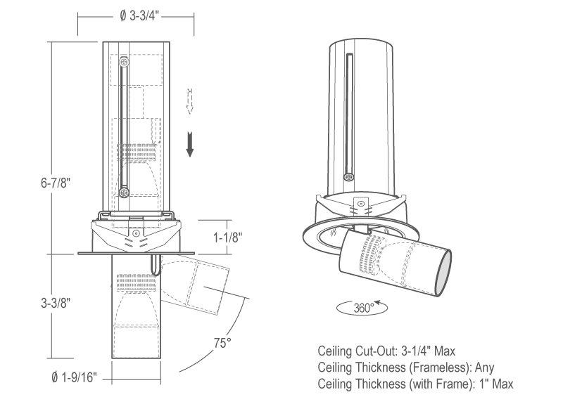 LRLD2567 telescoping LED cylinder projects from flanged housing and tilts 75° with 360° rotation to highlight accents and other items of visual interest.