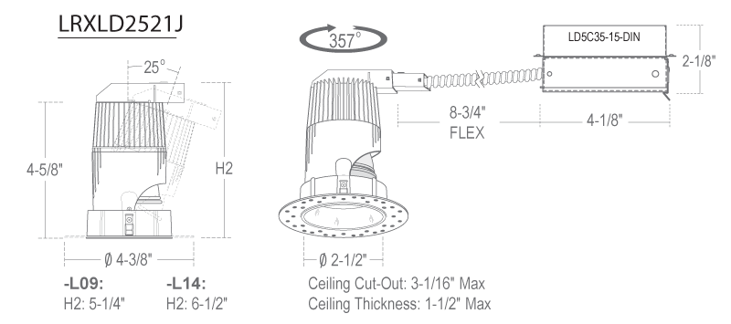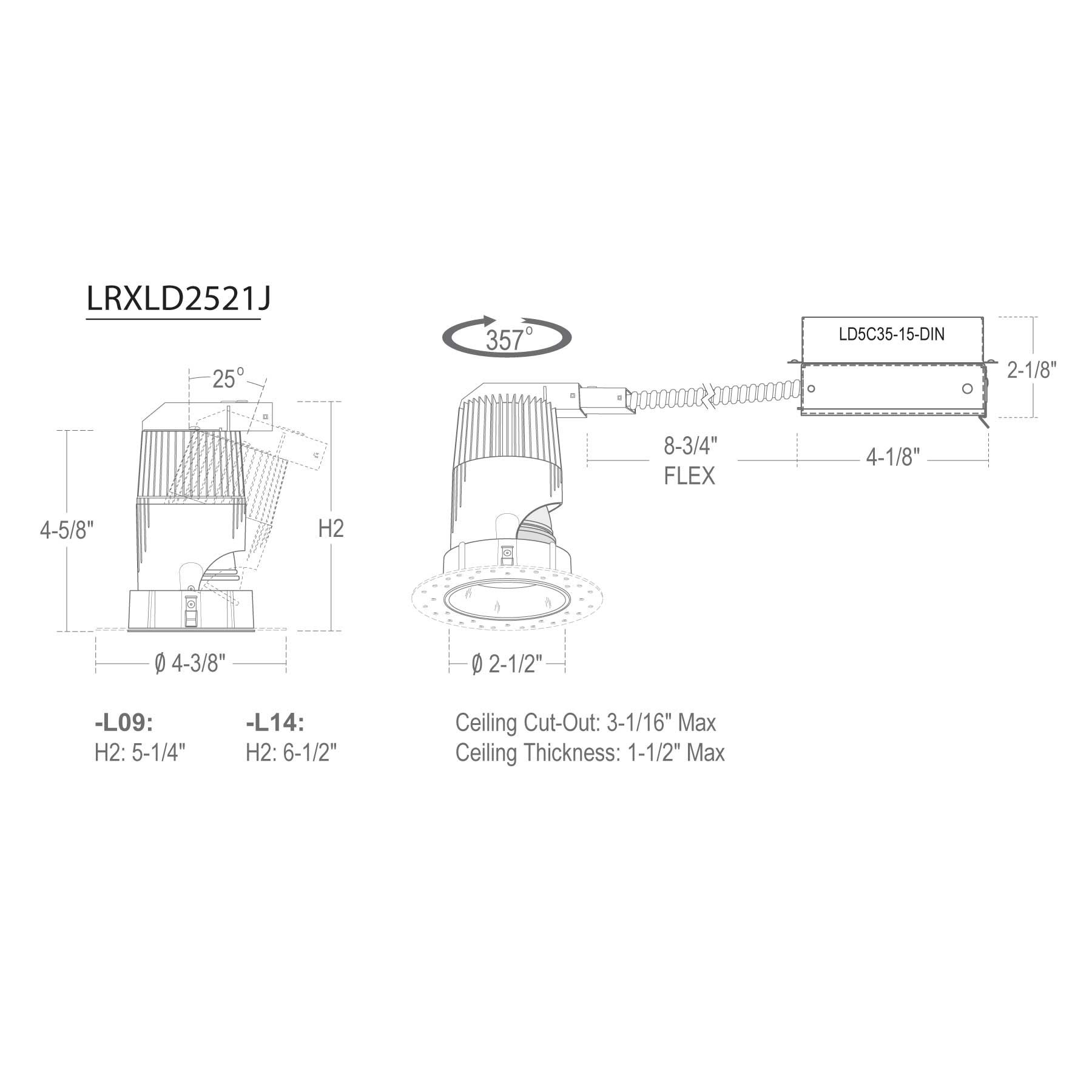 LRXLD2521J : 2.5" Recessed LED Round Flangeless 25° Adjustable Accent, 1000LM - 2400LM (15W-30W)
