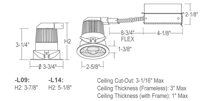 - 0.5% dimming for 750lm (-L09), 5% dimming for 1200lm (-L14)