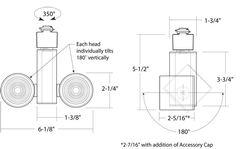 Architecturally styled Cylo Swivel Cylinder LED track head features a durable aluminum body, concealed heat sink, hidden wiring, and internal adjustment mechanism for a clean unobtrusive look. Its small size makes it ideal for retail, commercial and residential applications requiring stylish design and true MR16 performance
