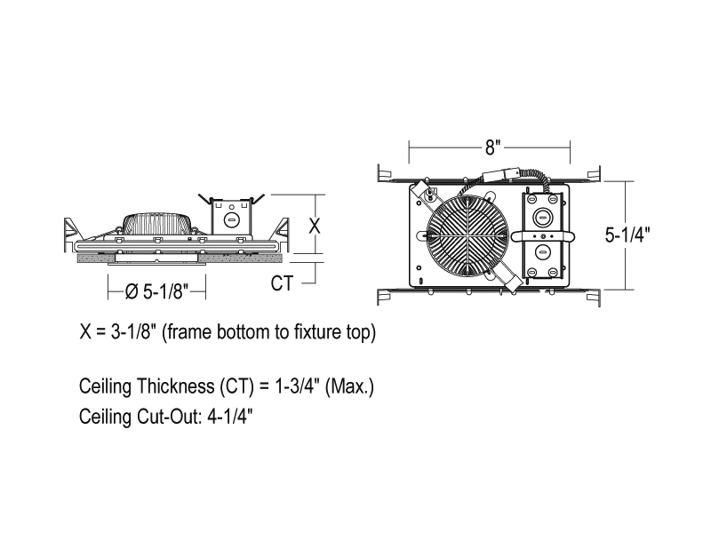 - Shallow 3-1/8" depth for ceilings with minimal plenum air-space