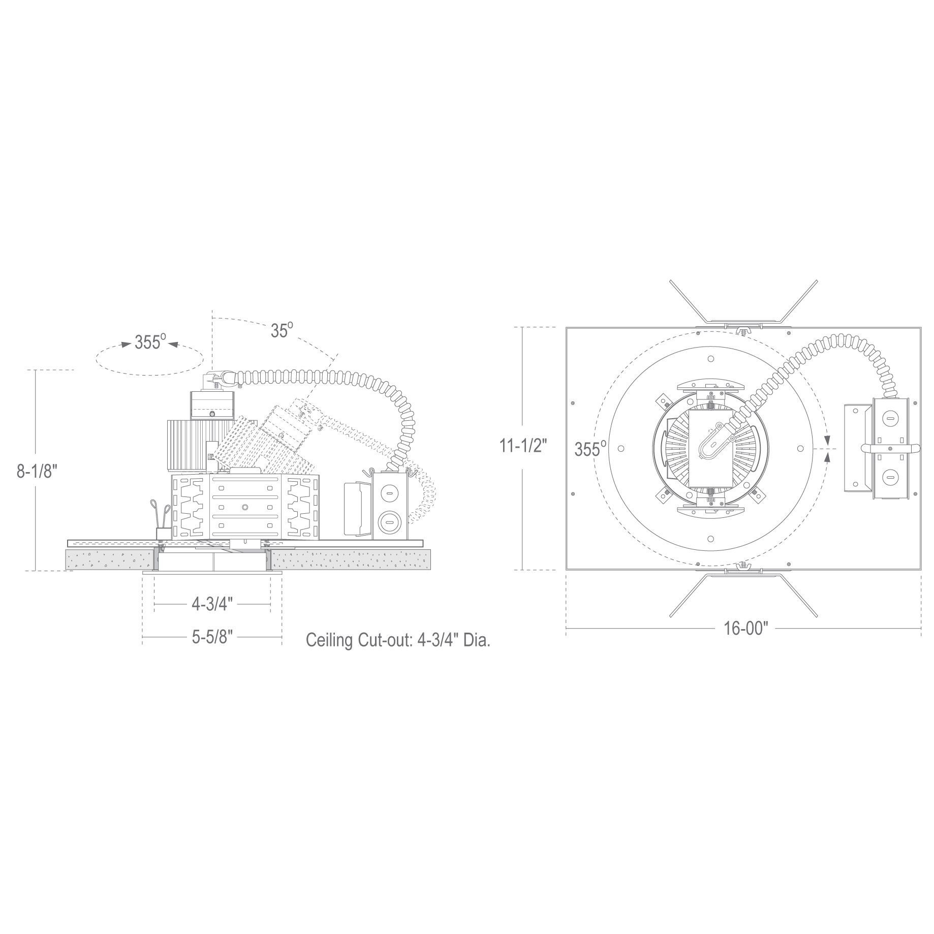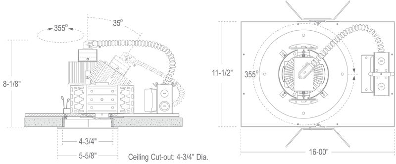 - Round trim collar rotates to allow exact alignment prior to ceiling finish