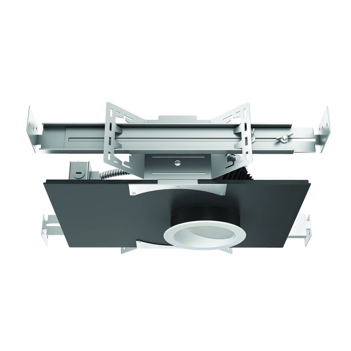Architectural 4" Adjustable Round LED Housings are designed for medium to high ceiling heights in retail, hospitality, commercial and architectural applications. An advanced ‘hot-aiming’ mechanism allows precise and lockable positioning of the square trim prior to finishing the ceiling. Post-installation adjustment of the beam tilt is possible from below the fixture.