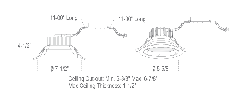 Ceiling Cut-out Max: 6-7/8" (175mm)