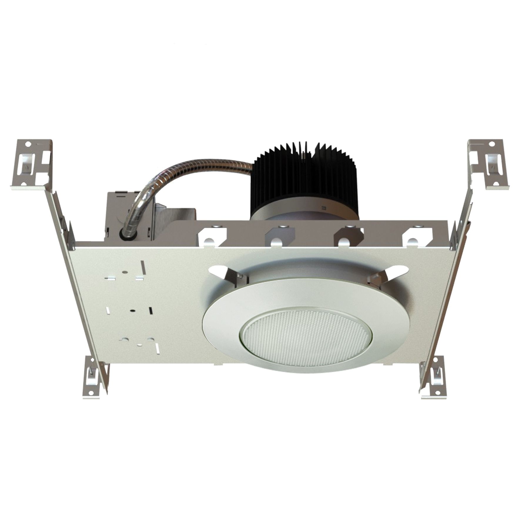 Commercial-grade recessed lensed LED downlight housing that is an excellent choice for showers or bathrooms, producing a strong vibrant light without drawing attention to the source.