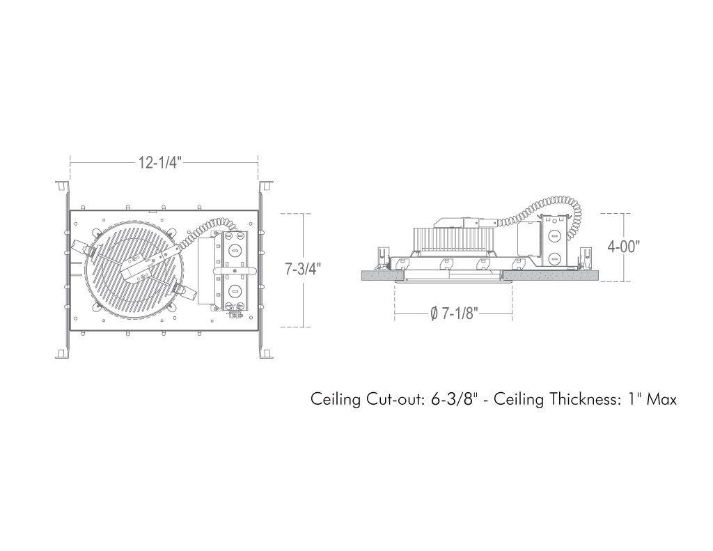 Commercial-grade recessed LED shallow downlight housing for medium to high ceilings in commercial and architectural spaces.