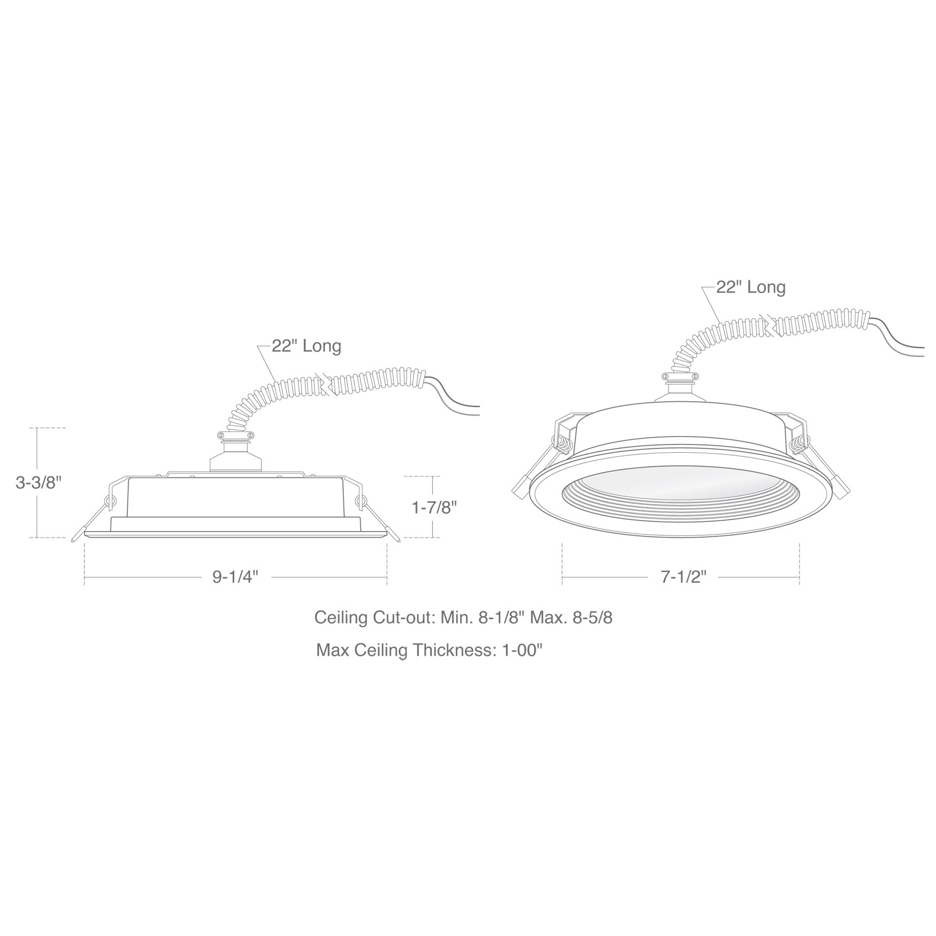 Ceiling Cut-out Max: 8.625" (220mm)