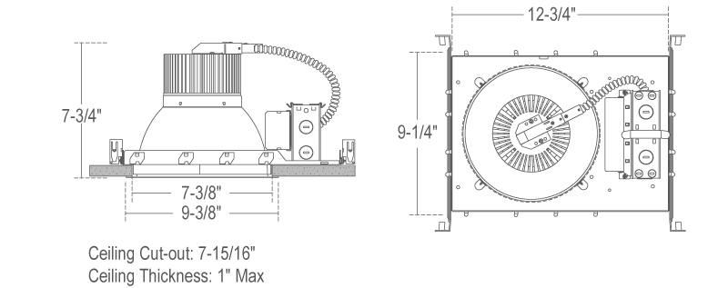 Commercial-grade recessed LED downlight housing for medium to high ceilings in commercial and architectural spaces.