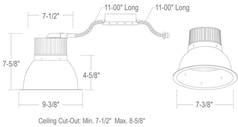 This Turtle Safe Commercial-grade LED recessed downlight retrofit is designed for low to high ceilings with existing open style frame.