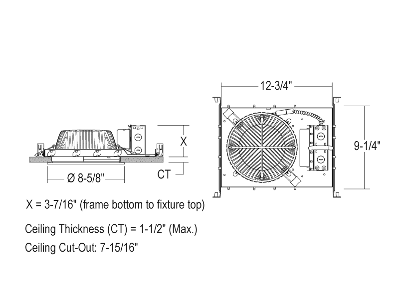 - Shallow 3-7/8" depth for ceilings with minimal plenum air-space