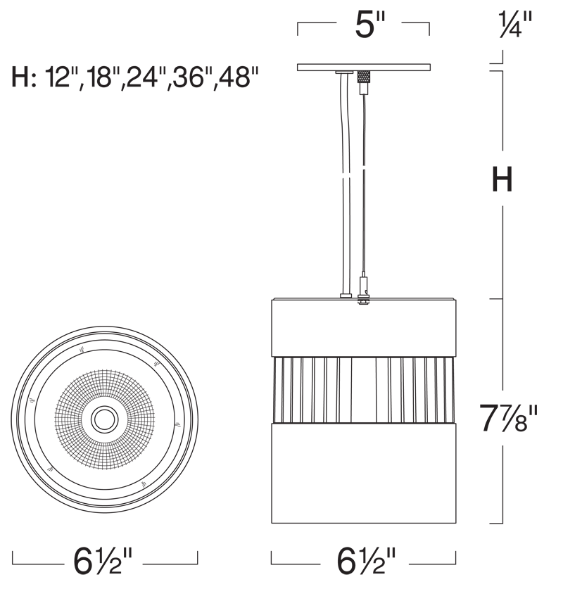 Mounts to standard electrical junction box. 72" Cable extension kit is field adjustable. 5-Wire electrical cable for dimming and non-dimming installations. Aircraft-grade cable.
