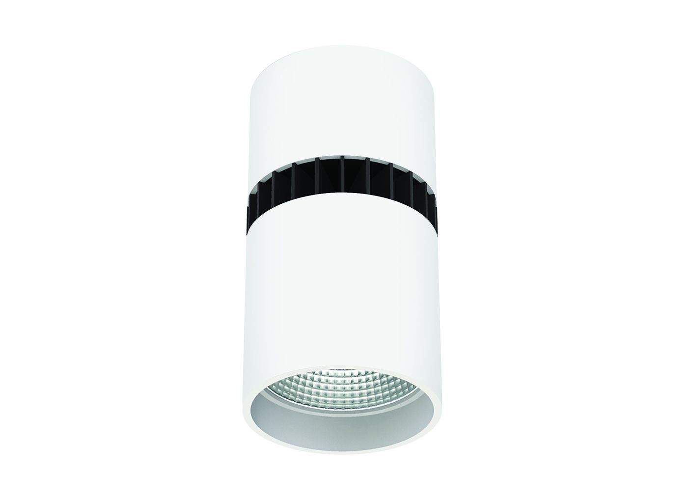 Architectural-grade cylinder surface mount LED downlight housing for medium to high ceilings combines energy efficiency with powerful lumen output. Perfect for atriums, churches, lobbies, and airports that have high ceilings.