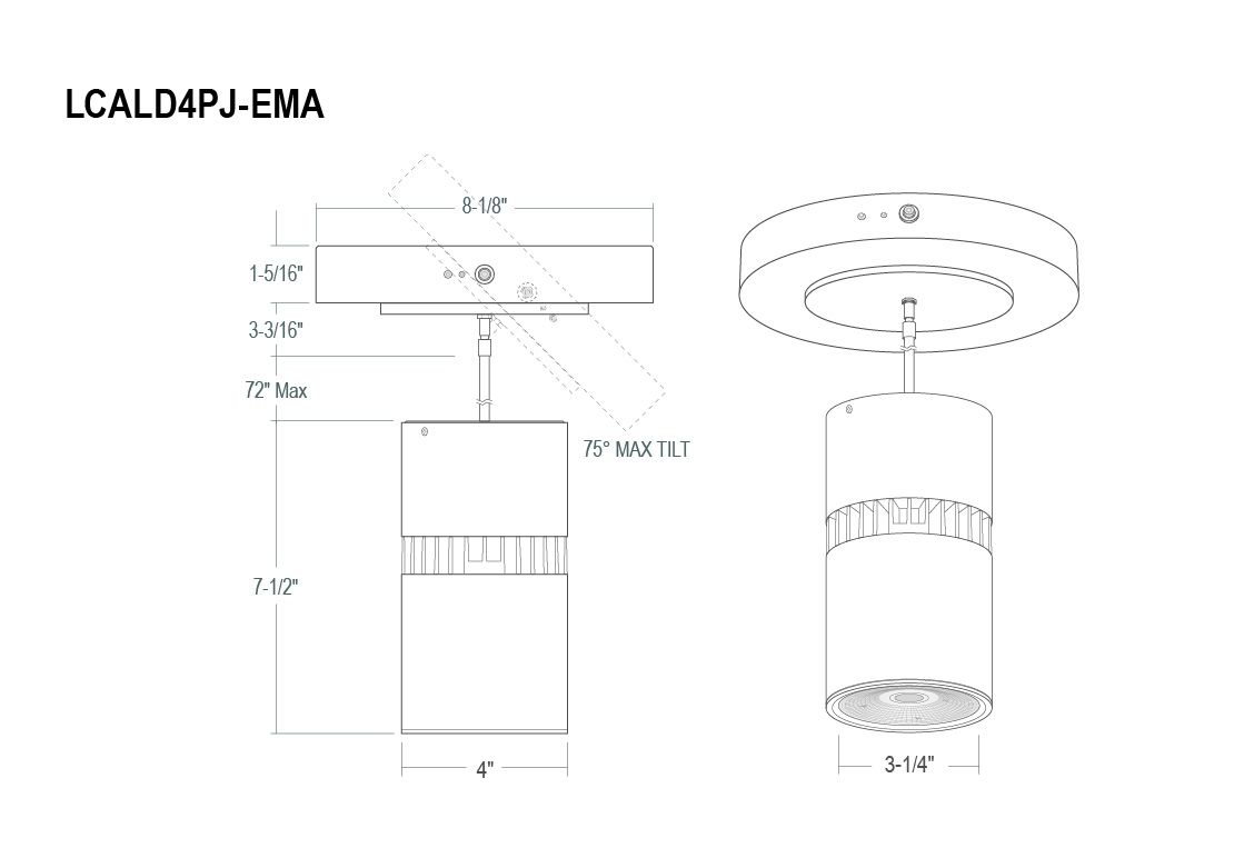 LCALD4 : 4" Lumen Cannon Ceiling/Pendant Mount - 1000lm-2600lm (10W-30W)