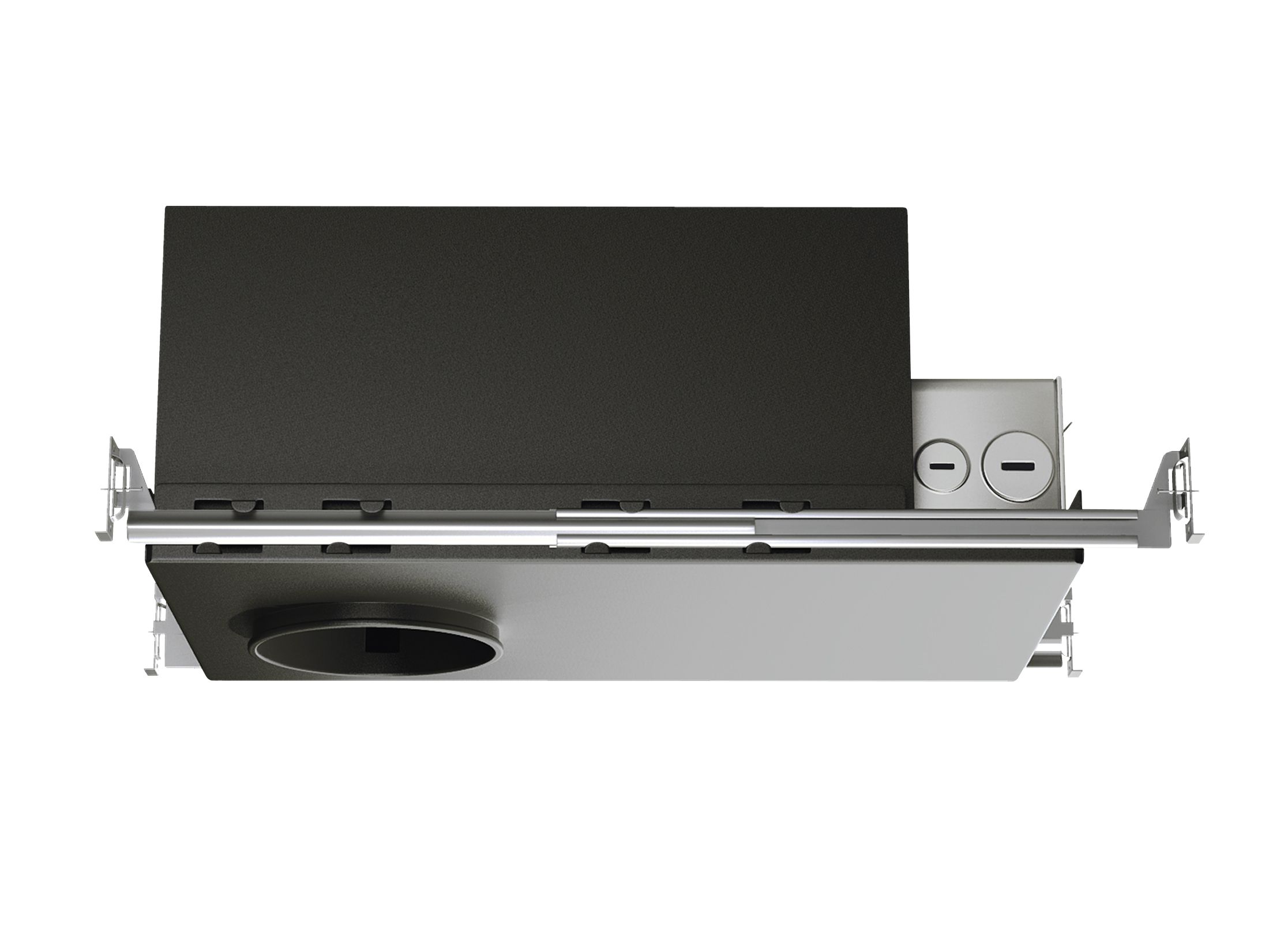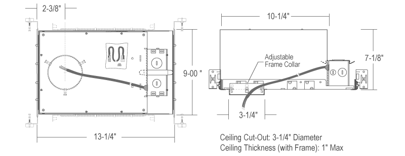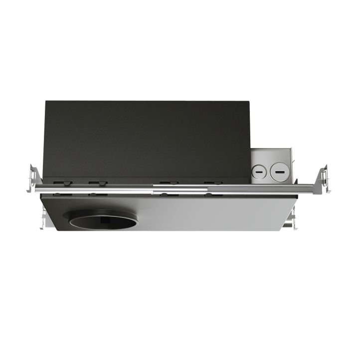 For locations where Insulation is used above ceiling, the frame allows for support for the downlight in weak ceilings such as tiles and locations where a rough-in frame is desired for new construction applications. Square Aperature adjust for pre-alignment. Frame includes (2) 24" Adjustable Hanger bars.